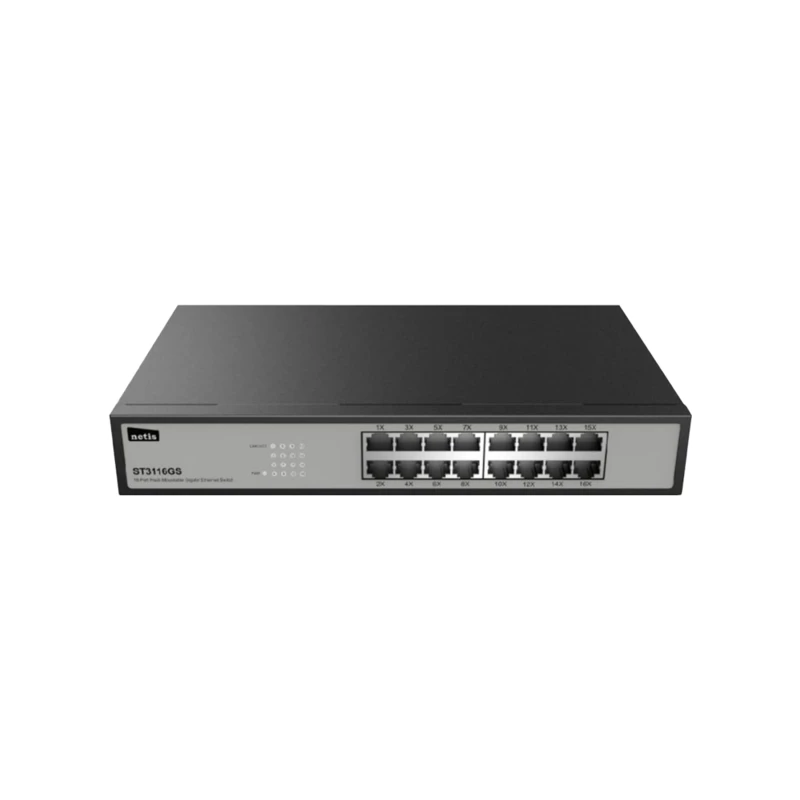 The netis ST3116G Gigabit Ethernet Rackmount Switch provides 16 10/100/1000Mbps Auto-Negotiation RJ45 ports .It is ideal for the small and medium office use. All ports support Auto MDI/MDIX function, eliminating the need for crossover cables or uplink ports. The 16 Port Gigabit Ethernet Rackmount Switch provides you with high-performance, seamless and standard upgrade to improve your old network to a 1000 Mbps network.